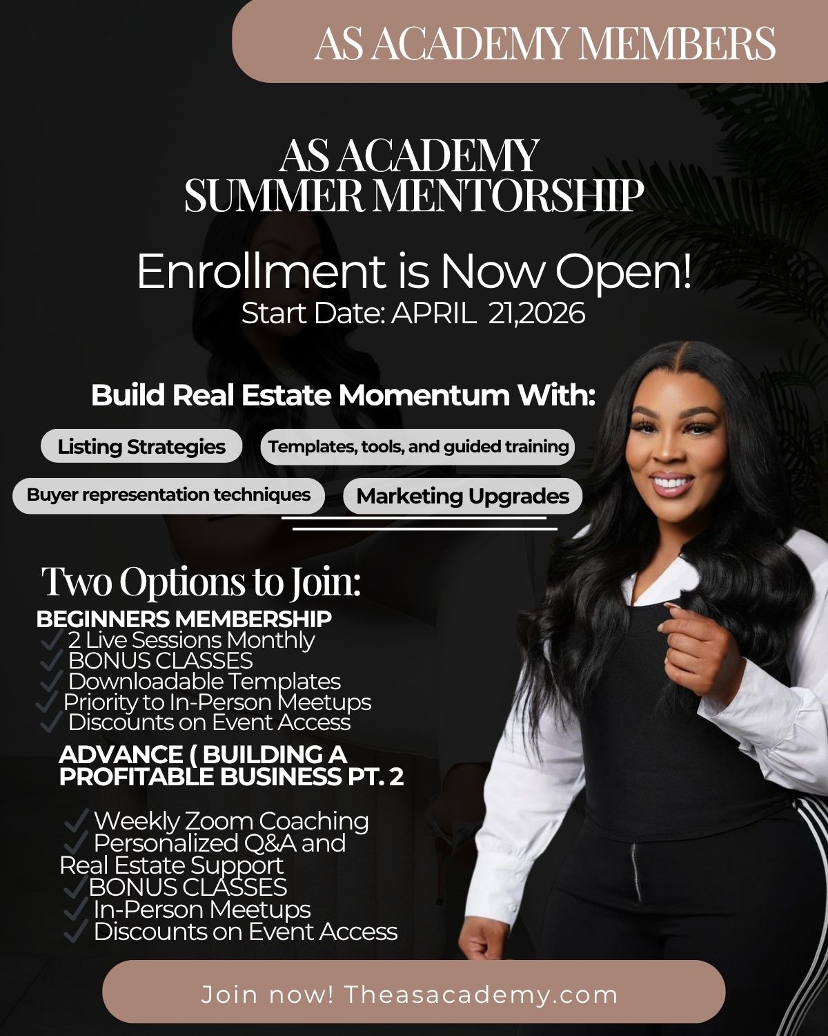 Creating the AS Academy was born out of my own experiences and the gap that I saw in the industry—a lack of mentorship and support for aspiring agents. I knew firsthand how challenging it could be to navigate the real estate world without guidance, and I also knew how having a community that supports you can really make a difference.